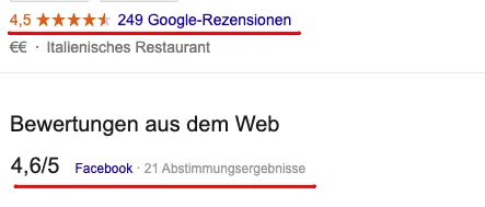 Wenn es Ihnen darum geht, durch Bewertungen besser gefunden zu werden und bei einer Recherche durch potentielle Kunden gut dazustehen, sind Google-Rezensionen die wichtigsten. Aber auch Kundenbewertungen auf anderen Plattformen, z.B. Tripadvisor oder Facebook, helfen bei der Suchpositionierung und werden auch bei einer Suche nach Ihrem Unternehmen angezeigt. Wenn auch nicht so prominent. Letztendlich ist aber eine Facebook- oder Tripadvisor-Bewertung auf jeden Fall besser als gar keine.