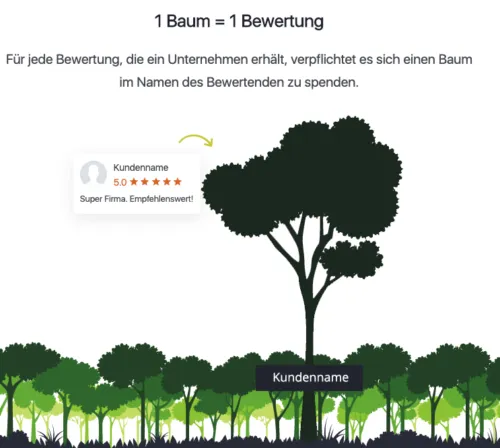 Ein weiterer Anreiz, damit sich der Kunde den Aufwand macht, kann die Teilnahme bei ReviewForest sein. Fuer jede Kundenbewertung bei Google spendet Ihr Unternehmen einen Baum.
