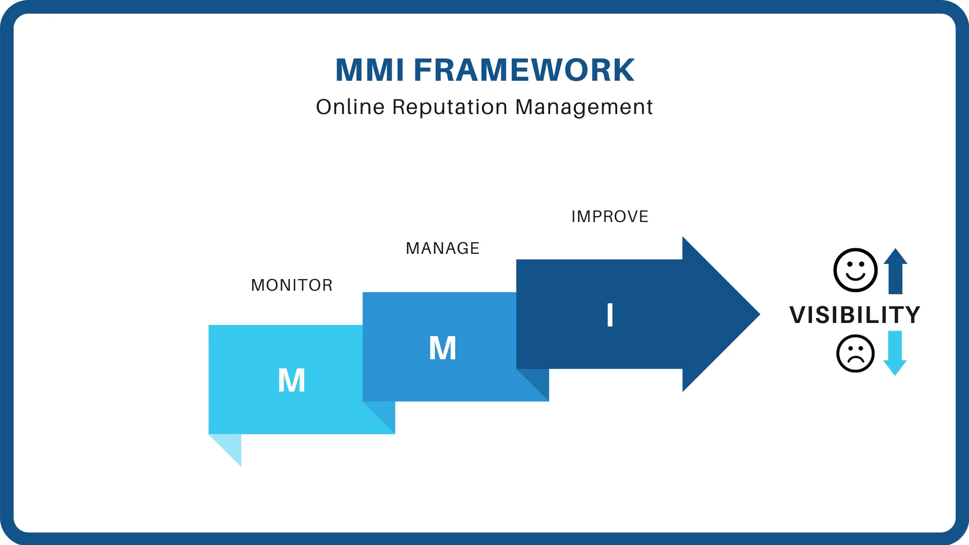 Beim Online Reputation Management ueberwachen und beeinflussen Unternehmen aktiv ihren eigenen Ruf im Internet. Wir empfehlen dafuer das MMI-Framework (Monitor, Manage, Improve). Zu Deutsch Ueberwachen, Verwalten, Verbessern.